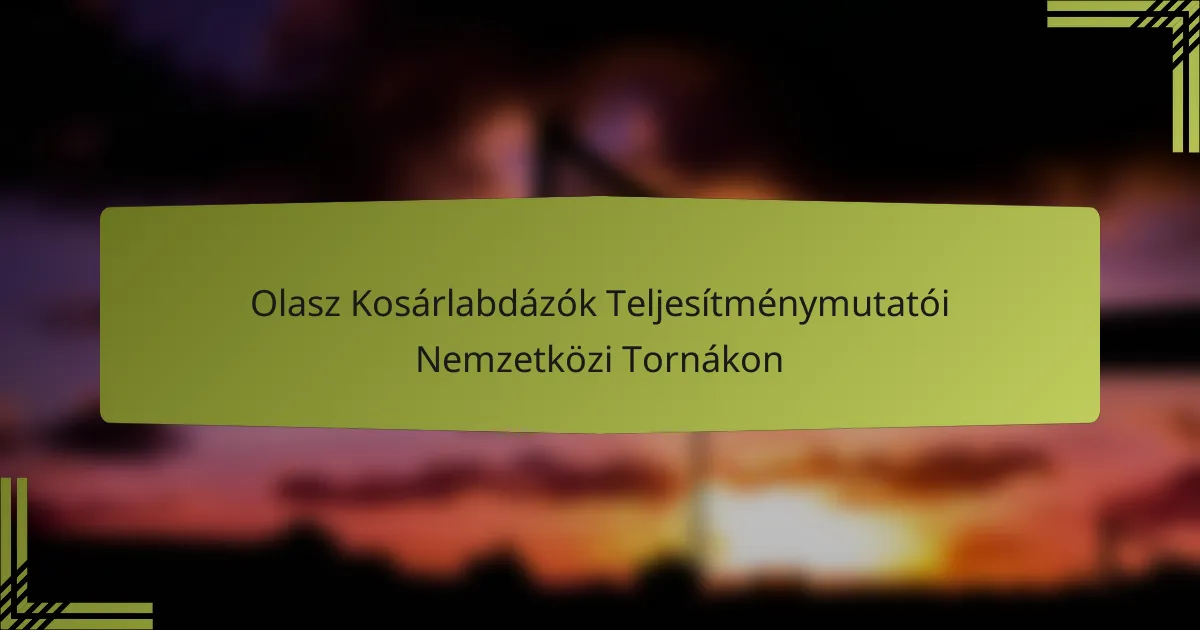 Az olasz kosárlabdázók teljesítménymutatói a nemzetközi tornákon kulcsfontosságúak a hatékonyságuk és versenyképességük globális szinten történő értékeléséhez. Az olyan kulcsfontosságú mutatók, mint a pontátlagok, a lepattanó statisztikák és az assziszt-elfordulási arányok felfedik az egyes játékosok és a csapat erősségeit és gyengeségeit. Ezeket a mutatókat olyan tényezők alakítják, mint a játékosok tapasztalata és a coaching stratégiák, átfogó képet nyújtva a magas tétű környezetekben nyújtott hozzájárulásaikról.